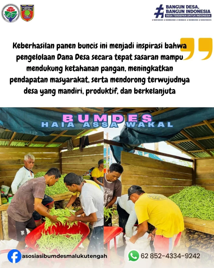 Program ketahanan pangan yang dikelola oleh BUMDes Hala Asa Negeri Wakal menunjukkan hasil yang menggembirakan melalui panen perdana buncis. Kegiatan ini merupakan bagian dari pemanfaatan 20% Dana Desa yang dialokasikan khusus untuk mendukung ketahanan pangan sesuai dengan kebijakan pemerintah.