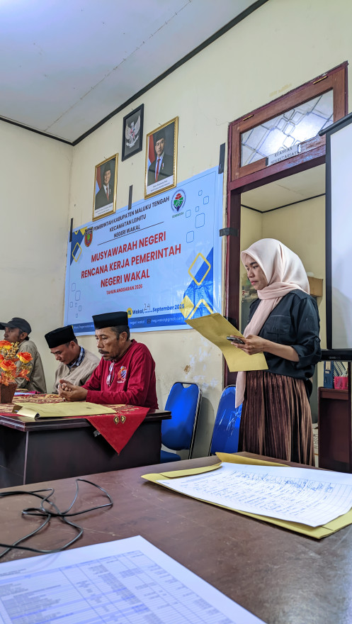 Wakal, 24 September 2026. Pemerintah Negeri Wakal menyelenggarakan Musyawarah Penyusunan Rencana Kerja Pemerintah (RKP) Tahun 2026, bertempat di Balai Negeri Wakal. Kegiatan tersebut berlangsung dengan tertib dan lancar, dihadiri oleh berbagai unsur pemerintahan dan masyarakat.